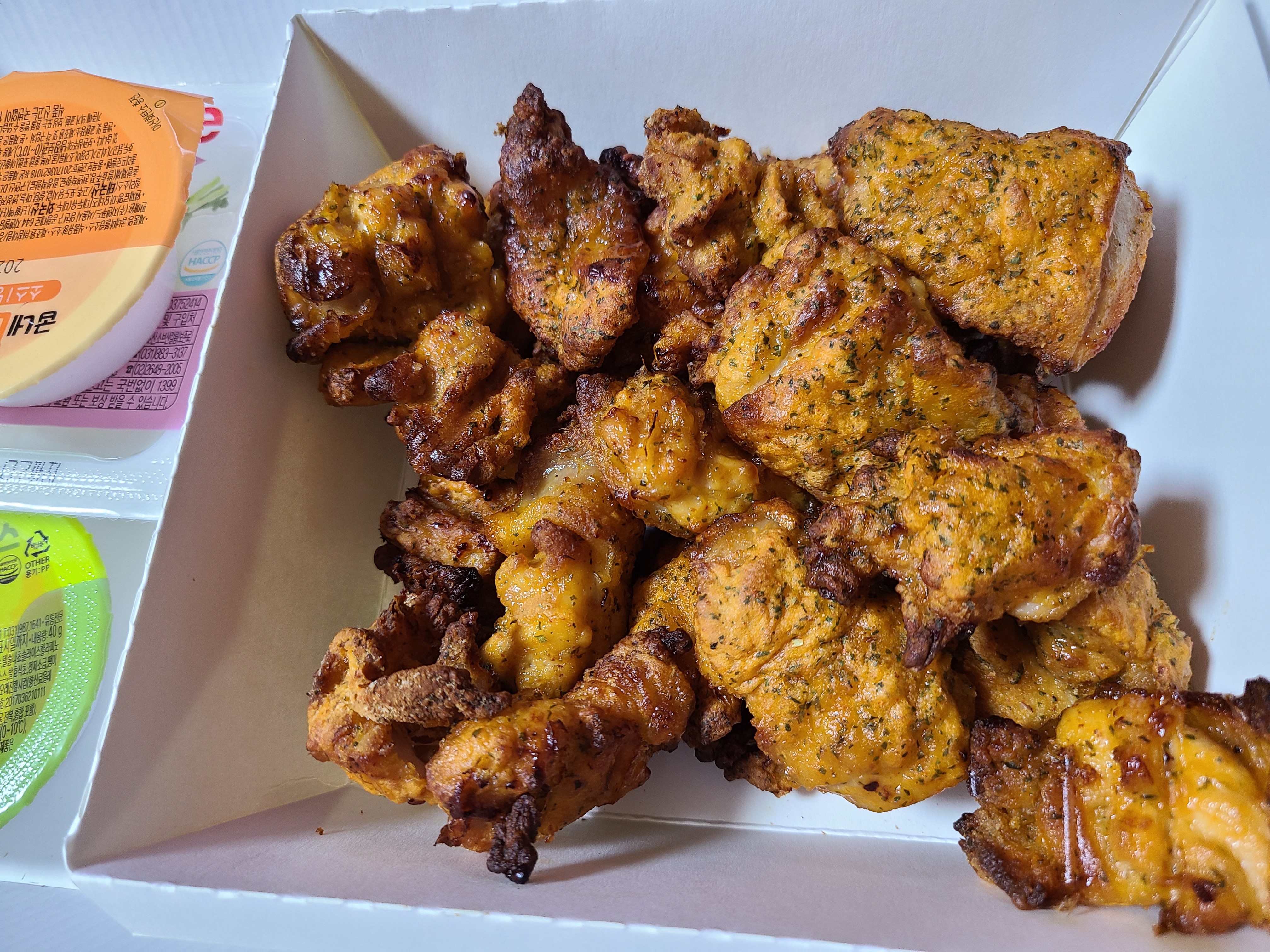 우리 동네 순살 품절이라 다른 점에 시켰더니 너무 바싹 구워주심,, 어쨌든 순삭함